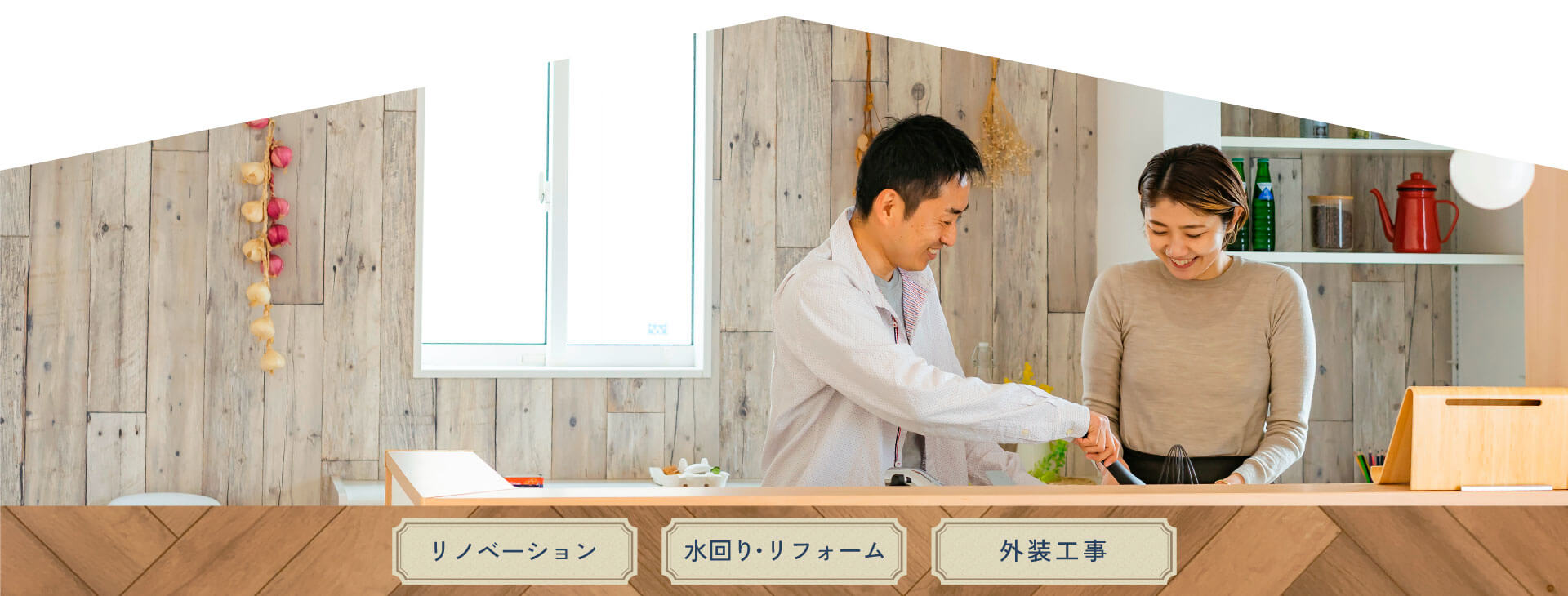 水回りや外装といった日常の小さな工事から、介護やペット対応といった新しい暮らし方に応えるリフォーム、さらには新築や不動産まで。